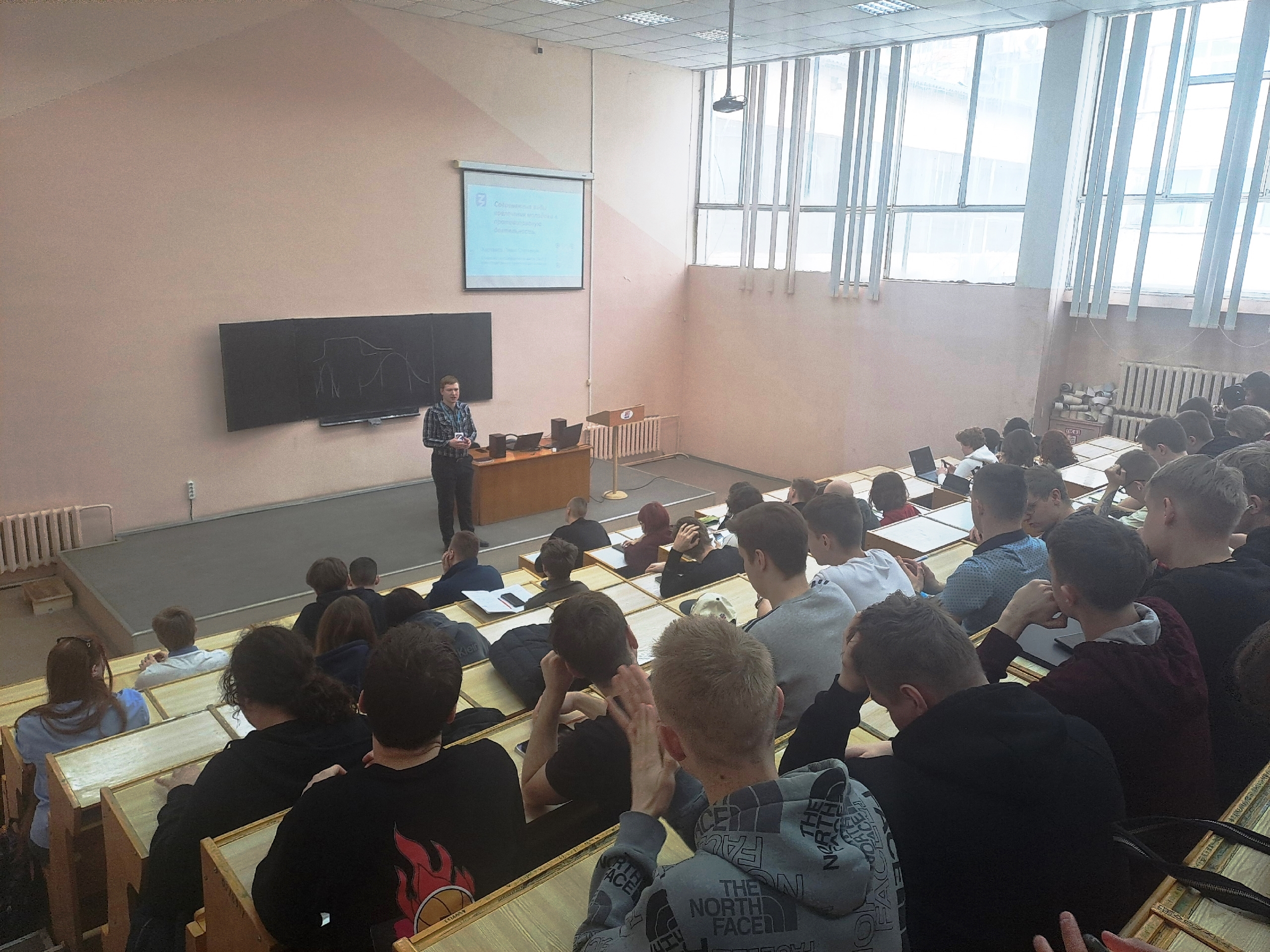 Студенты 1 курса направлений подготовки «Информатика и вычислительная техника», «Прикладная информатика», «Экономика», «Электроника и наноэлектроника» приняли участие в просмотре в качестве зрителей, а спикером мероприятия стал Павел Сергеевич Харламов – ассистент кафедры ВТ, специалист Координационного центра СмолГУ, член Общественного совета города Смоленска, лектор Российского общества «Знание».