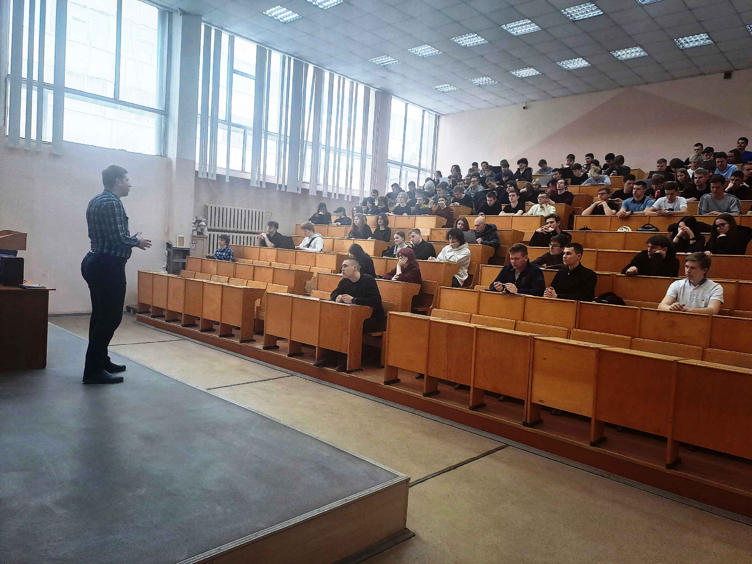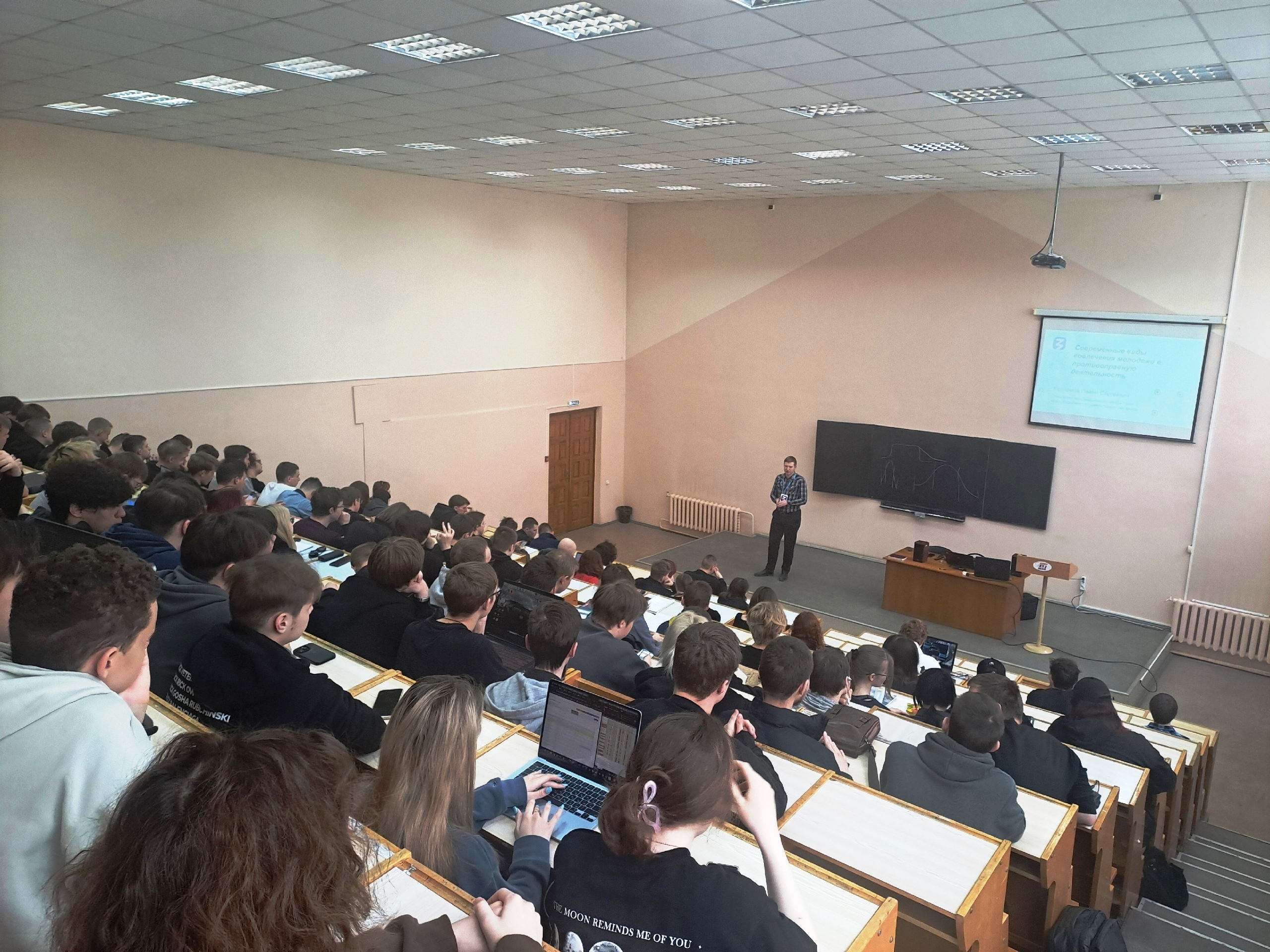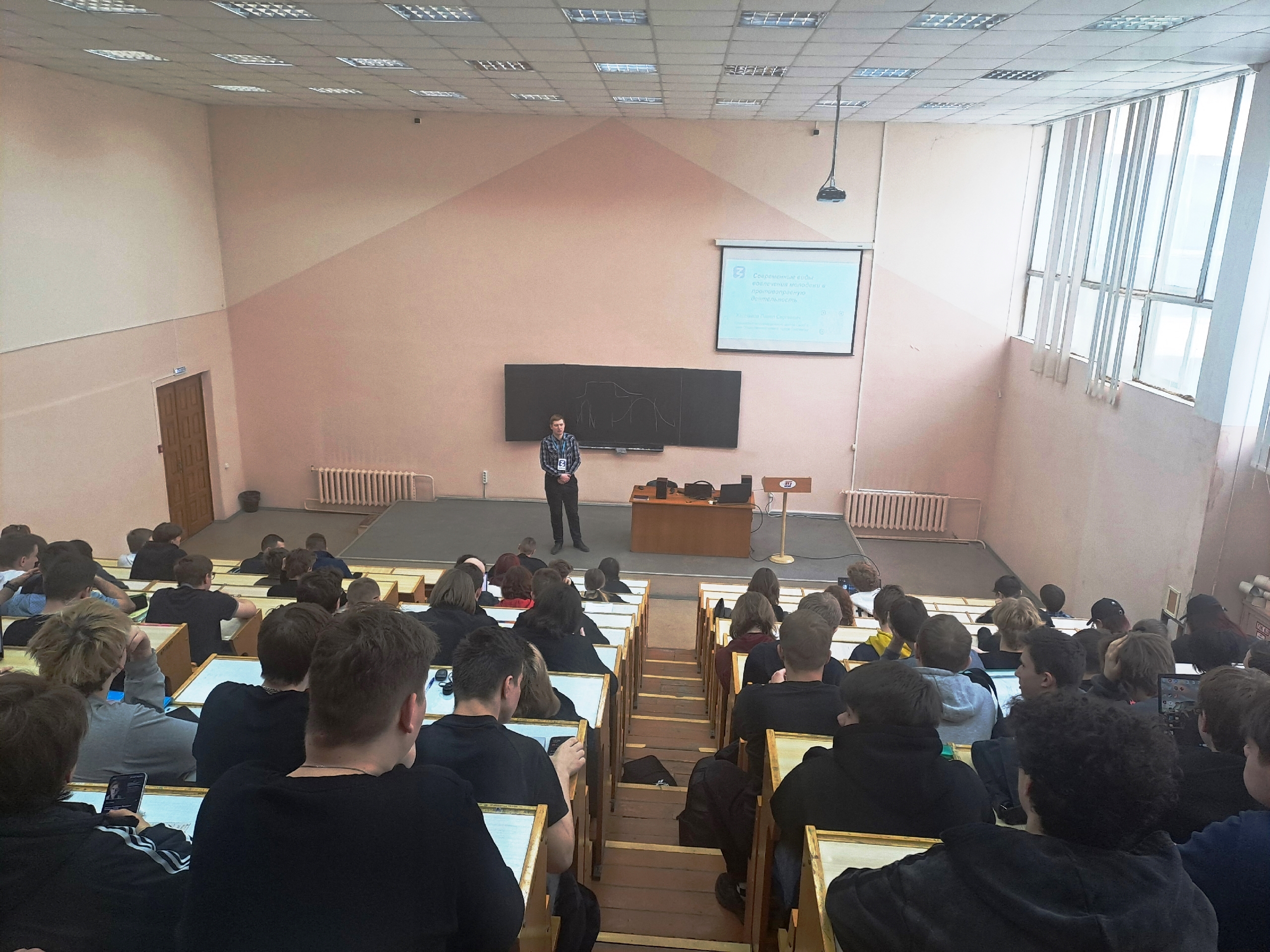 Студенты 1 курса направлений подготовки «Информатика и вычислительная техника», «Прикладная информатика», «Экономика», «Электроника и наноэлектроника» приняли участие в просмотре в качестве зрителей, а спикером мероприятия стал Павел Сергеевич Харламов – ассистент кафедры ВТ, специалист Координационного центра СмолГУ, член Общественного совета города Смоленска, лектор Российского общества «Знание».