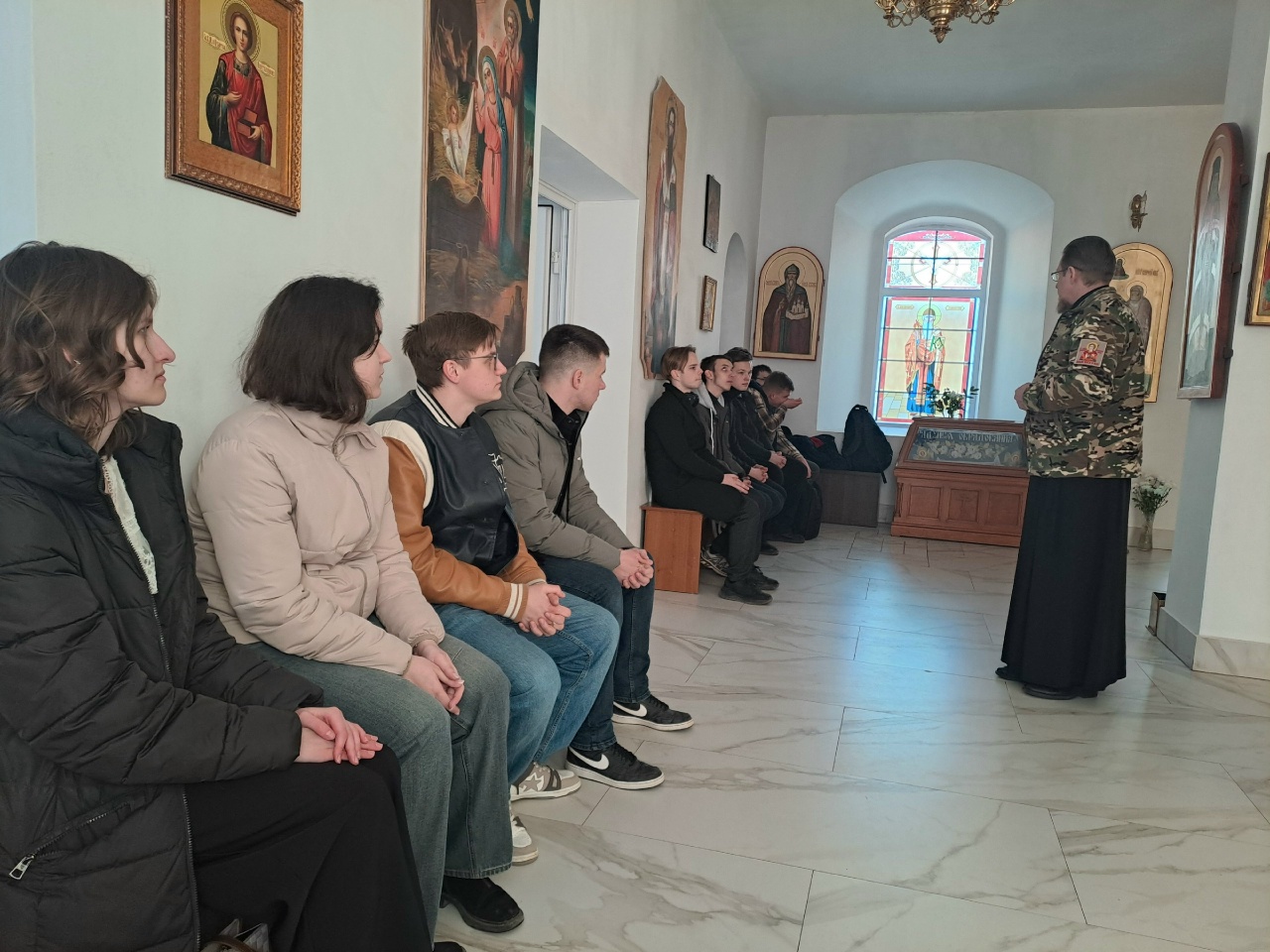 17 марта студенты гр. ПЭ-25 побывали в гостях у военного священника, настоятеля храма Преображения Господня г. Смоленска, руководителя отдела Смоленского Епархиального управления по взаимодействию с Вооруженными Силами, помощника командира в/ч 21555 по работе с верующими военнослужащими иерея Сергия Маркова.